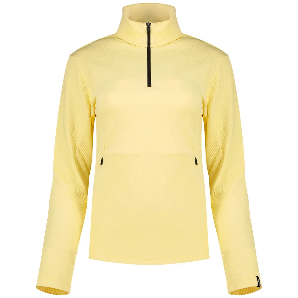 Funktionalitet är kärnan i dess design. Den praktiska halvdragkedjan i halsen möjliggör omedelbar och enkel ventilation, vilket ger dig fullständig kontroll över din temperatur när förhållandena förändras på berget. Dra upp den helt för maximalt skydd av nacken mot kalla drag eller öppna den för att svalka dig snabbt. Det ergonomiska snittet är skräddarsytt specifikt för den kvinnliga formen och erbjuder en elegant, kroppsnära passform som rör sig med dig. Denna strömlinjeformade silhuett säkerställer maximal rörelsefrihet och möjliggör sömlager utan att lägga till någon begränsande volym. Den långärmade designen ger fullständig täckning och värme för dina armar, vilket gör den till ett verkligt oumbärligt plagg för vintern.