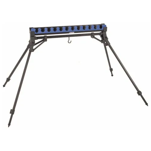 COLMIC Match Back Stop-spöhållaren är en mångsidig och hållbar fiskeutrustning designad för fiskare som uppskattar kvalitet och prestanda. Denna spöhållare har 12 justerbara sektioner som gör att du säkert kan hålla flera fiskespön på plats medan du väntar på ett napp. Spöhållaren är tillverkad av högkvalitativa material i en elegant svart och blå färgskala, vilket garanterar långvarig hållbarhet och ett snyggt utseende vid vattnet. Oavsett om du fiskar från stranden eller en båt är denna spöhållare ett måste för alla seriösa fiskare.