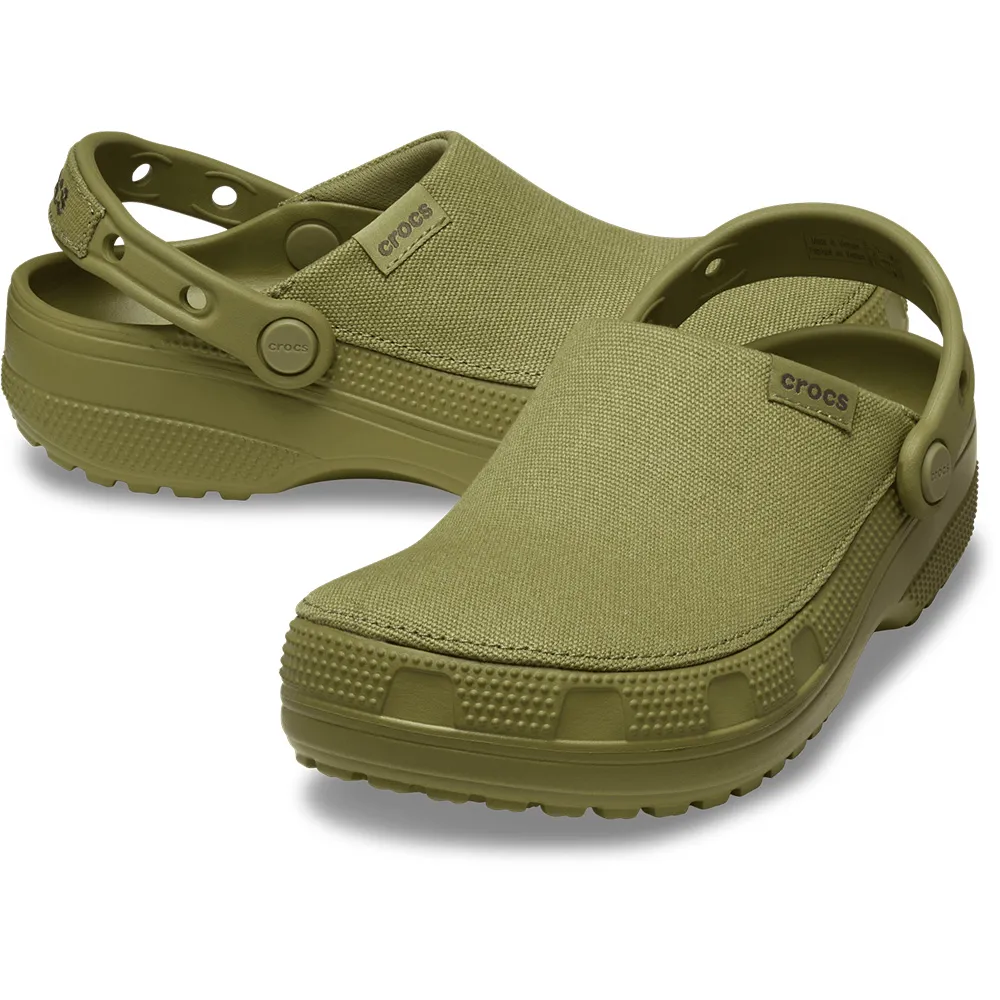 Möt din nya favorit-träsko – Classic Crafted Clog. Den erbjuder allt du älskar med Crocs-träskor, nu med en mjuk tvättad canvasöverdel som är 100% textil. Du kommer fortfarande att njuta av samma Classic Clog-passform och funktioner, inklusive en Croslite™-yttersula för hållbarhet och stöd. Och den nya canvasöverdelen ger en stilren och ungdomlig energi, tillsammans med extra komfort. Dessutom gör Jibbitz™-hålen på hälremmarna det enkelt att personifiera din look. För en fräsch och inspirerad version av den Crocs-komfort och stil du älskar, kliv in i Classic Crafted Clog.