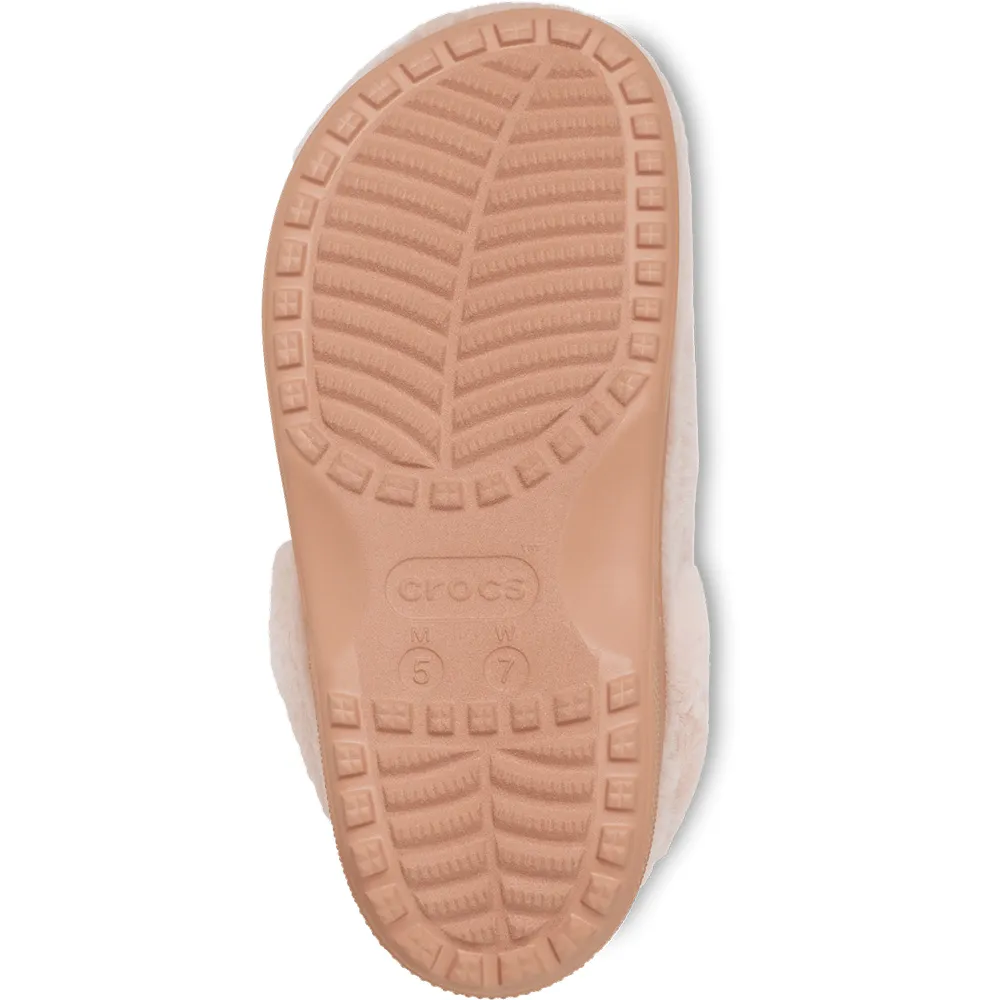 Den fuskpälsfodrade ovandelen ger tofflans mysighet, och den mångsidiga Croslite™-yttersulan tar dig vart din dag än leder dig.