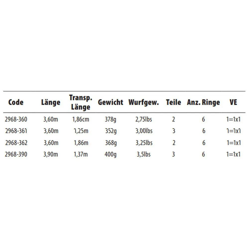 Serien inkluderar spön från praktiska 2.70m för fiske på kortare avstånd / båtfiske till längre 3.60m för fiske på medellångt / långt avstånd.