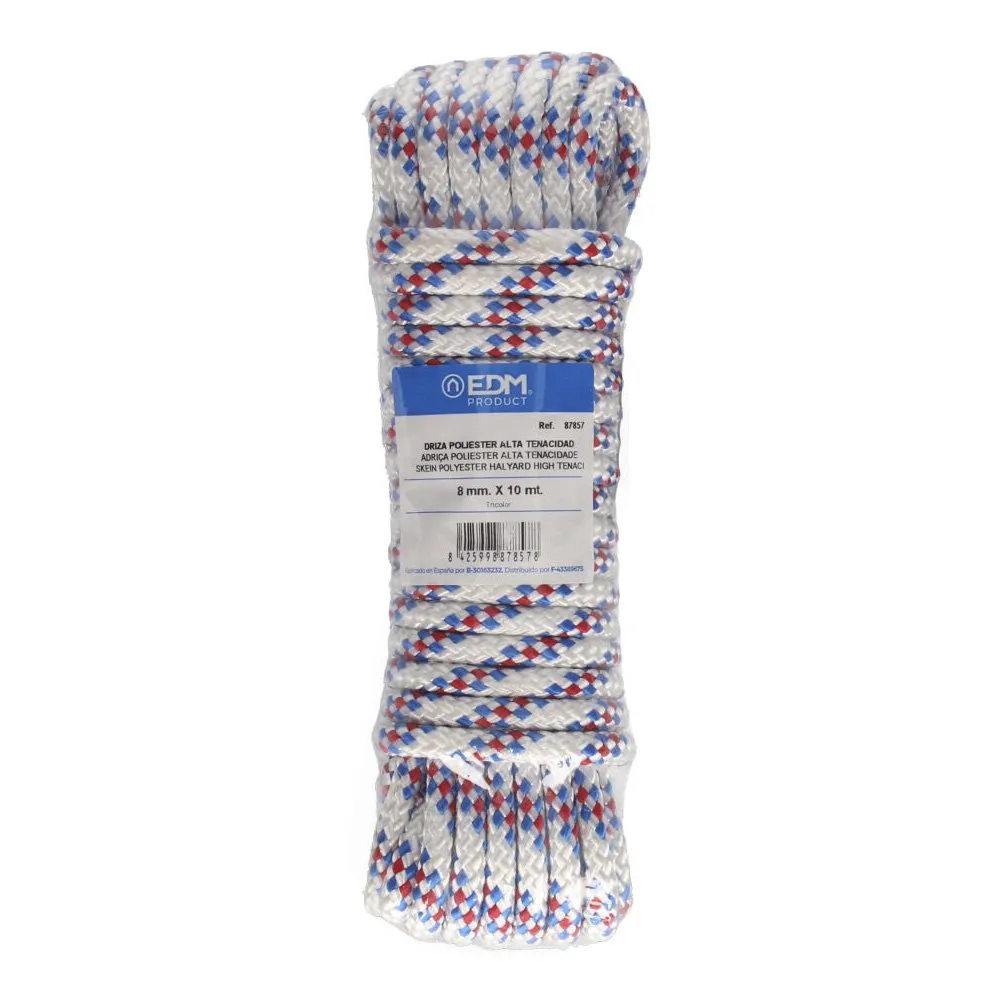 EDM 87857 Polyesterfall med hög hållfasthet | 10m x 8mm Trefärgat rep
