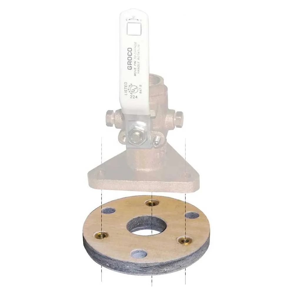 Varje storlek passar flera sjökranarstorlekar. Pressa in gängade insatser i skrovsidan av stödblocket i hålen som matchar sjökranens fläns1/2´´ tjocklek är tillräckligt styv för en säker installation men tillräckligt flexibel för att anpassa sig till mindre skrovkrökning Kommer inte att svälla eller absorbera fukt .