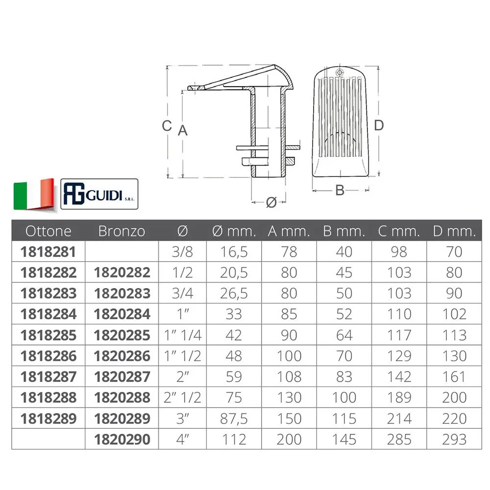 Skydda din värdefulla marinmotor från skadligt skräp med den robusta och pålitliga GUIDI Bronsinsugningssil. Denna viktiga del av marin ventilationsutrustning säkerställer ett jämnt flöde av rent kylvatten, vilket förhindrar blockeringar och maximerar motorns prestanda.