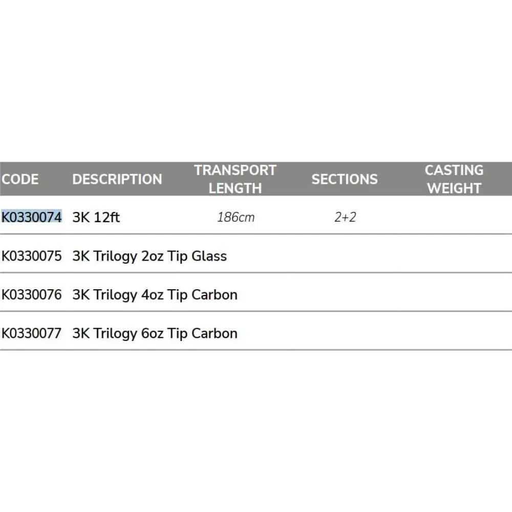 Produktbeskrivning för Korum 3K Trilogy Triple Tip karpspö