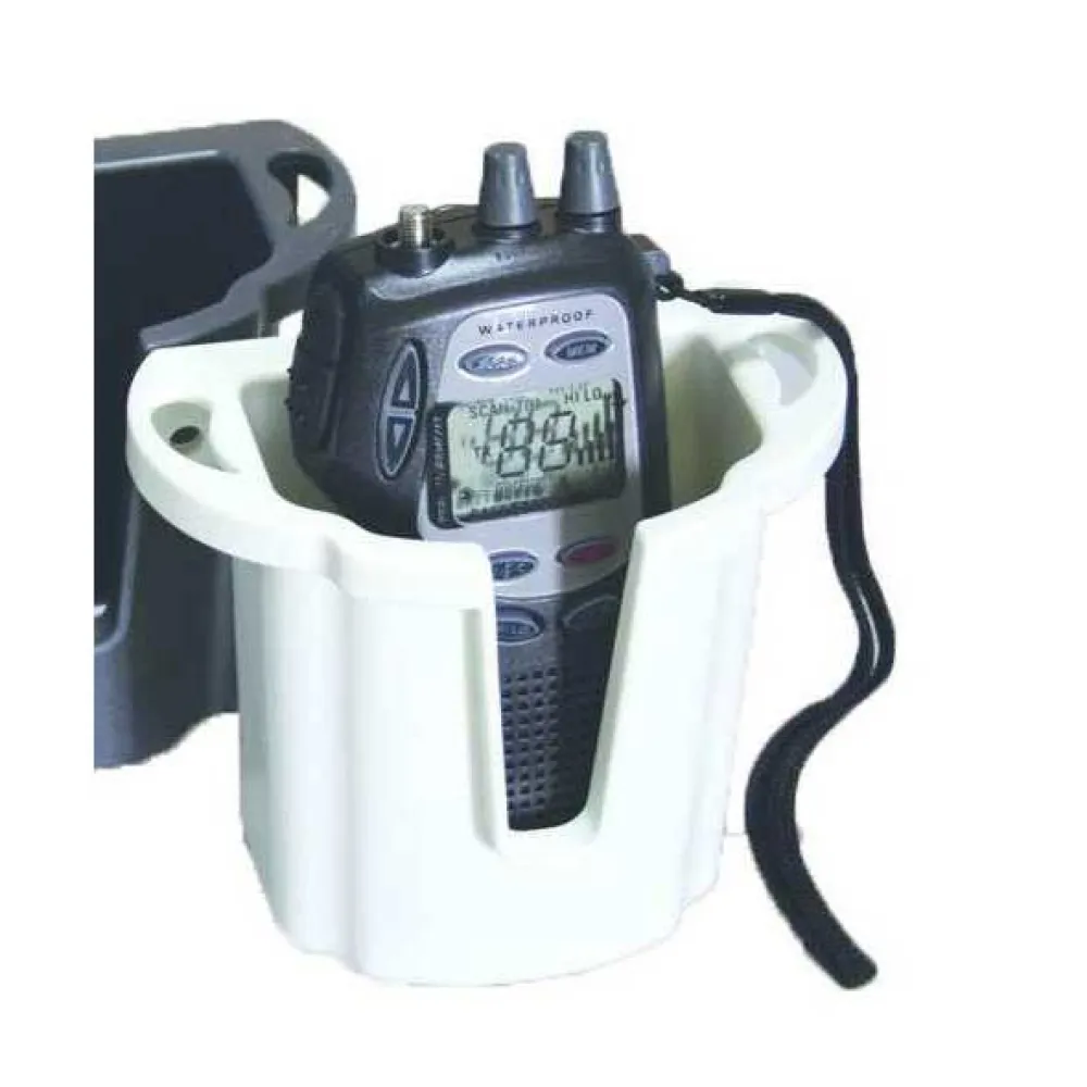 Med VHF / FRS fall kan du hålla dina kommunikationsenheter säker och inom räckhåll. På grund av sin ringa storlek, kan det till och med ligger an rodret för den minsta båten. För att montera fall kan du placera stödbasen (99.824 7) antingen på baksidan eller på undersidan av