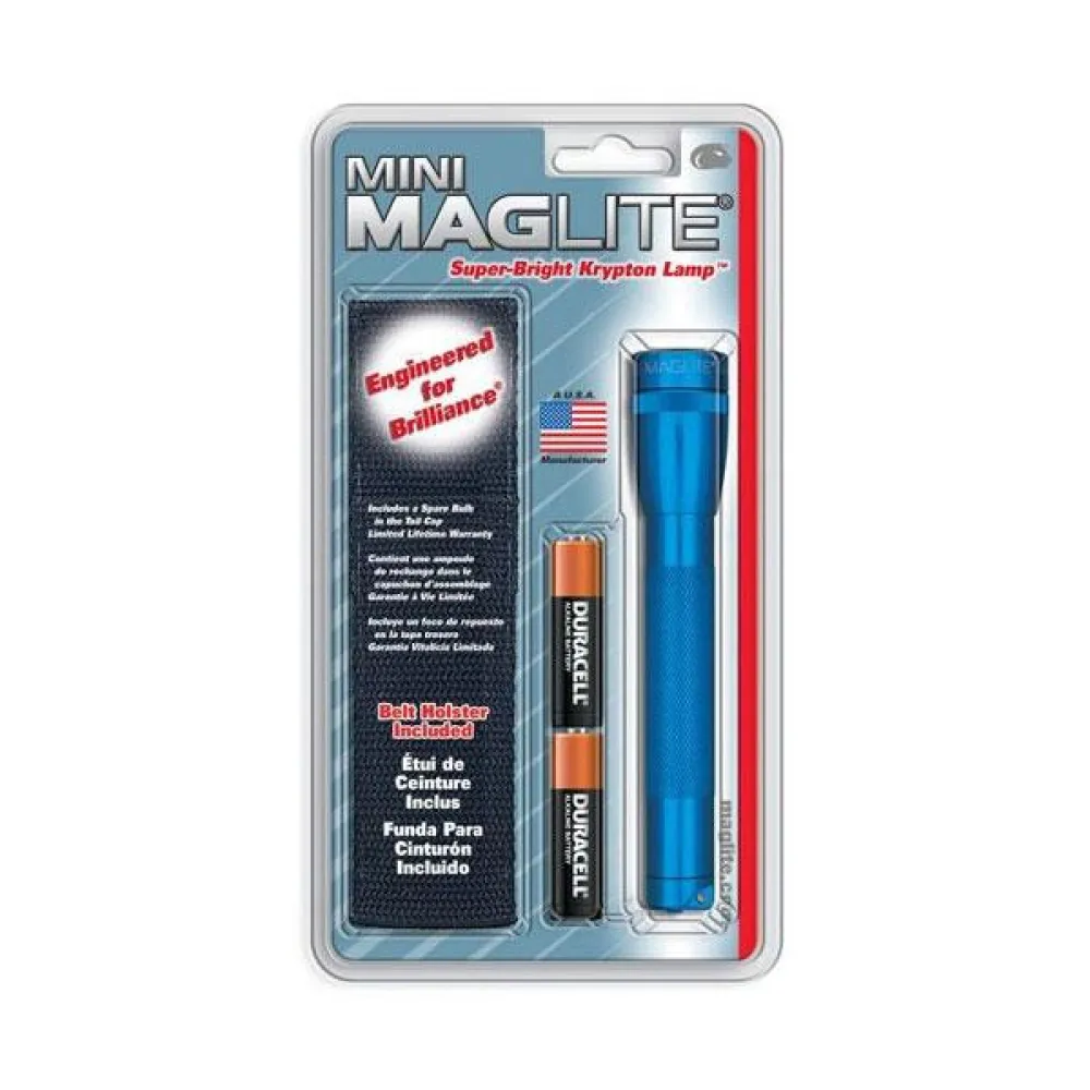 Mini Maglite har en ljus och justerbar plats för översvämningsbalk och drivs av 2 AA-batterier som varar i 5 timmar. Mini Maglite är konstruerad av en anodiserad aluminiumlegering och är korrosionsbeständig, slagtålig och väderbeständig.