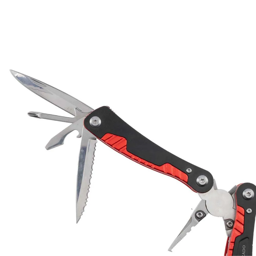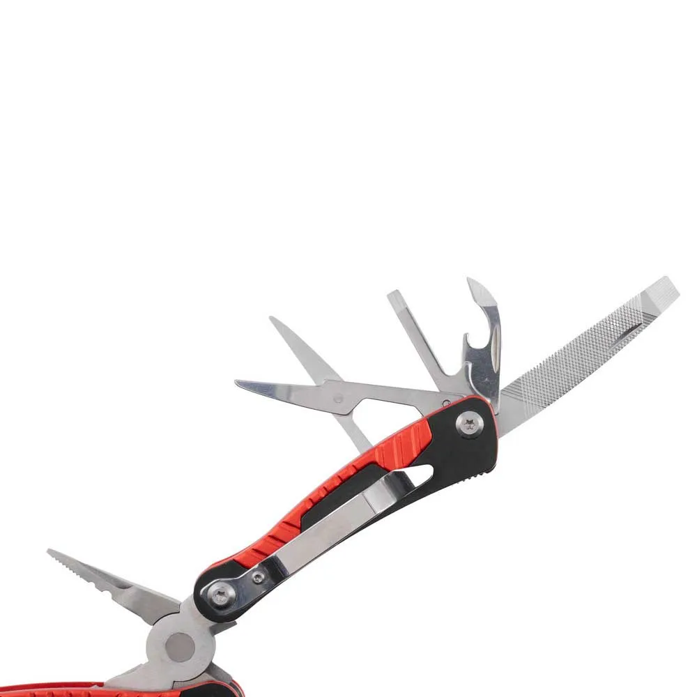 En solid och funktionell 12-i-1 multiverktyg med alla funktioner du kan behöva – från en splittringsverktyg, via sax och skruvmejsel, till konservöppnare och fil. Kompakt storlek när den är hopfälld.