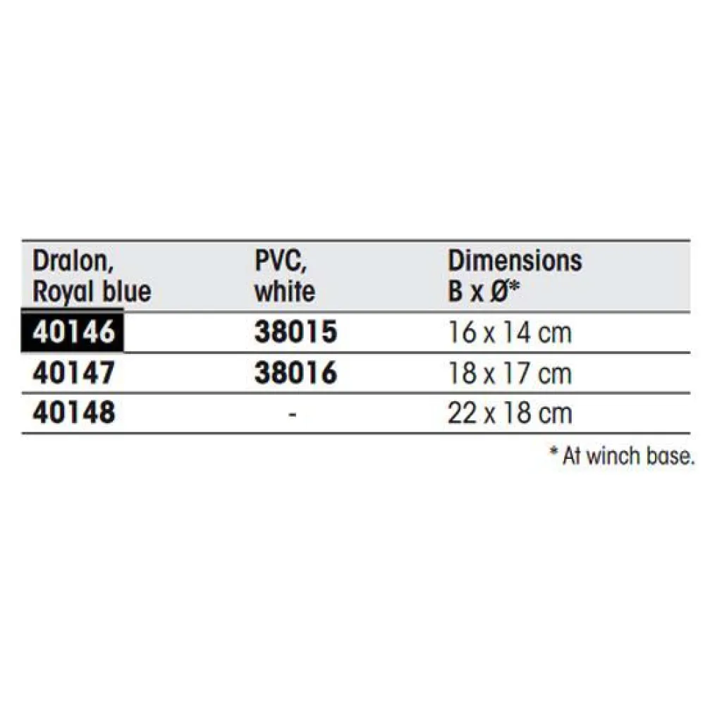 Dralon-överdrag: Dessa andningsbara överdrag hålls säkert på plats på vinschtrumman med ett starkt, integrerat elastiskt band. För extra säkerhet fäster en slitstark rem överdraget vid vinschbasen, vilket säkerställer att det sitter stadigt på plats.