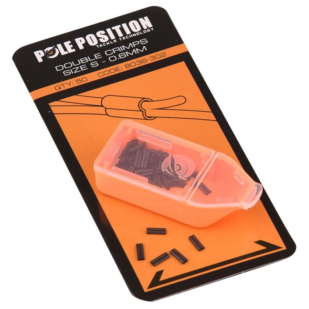 Dessa släta dubbla krimpar skapar en fast (loop) anslutning. Idealisk för tillverkning av (styva) bomsektioner, kombiriggar eller korta chodriggar. Används för rigg- eller ledarmaterial mellan 0,47 och 0,70 mm i kombination med Pole Position Crimp Tool. Crimparna finns i två storlekar och kommer i en praktisk kartong.