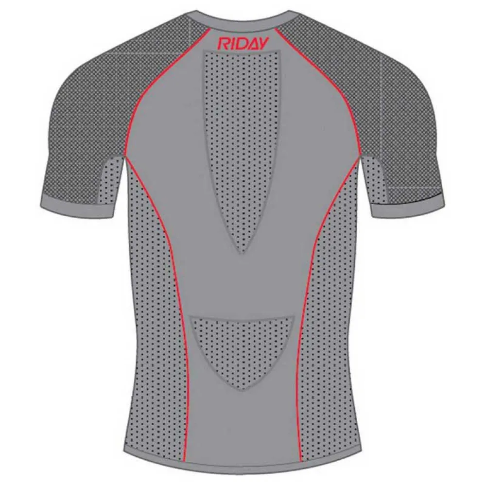Sportplagg utvecklade i 3D-teknik, tredimensionell och ergonomisk stickning. Tack vare nätstrukturen, med en kombination av olika tyger och elasticitet, garanterar RIDAY® en hög prestanda för sportaktiviteter: motstånd mot olyckor, elasticitet och rörelsefrihet.