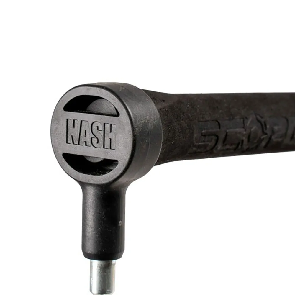 Rullfästen i kolfiberrör med graverade Nash-logotyper och ett plattat tumgrepp.