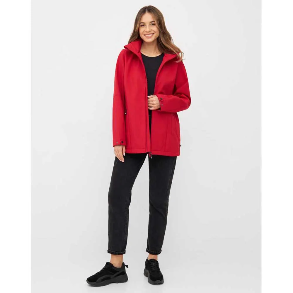 Softshell jacka med justerbara band i midjan, 2-vägs front-dragkedja och avtagbar huva.