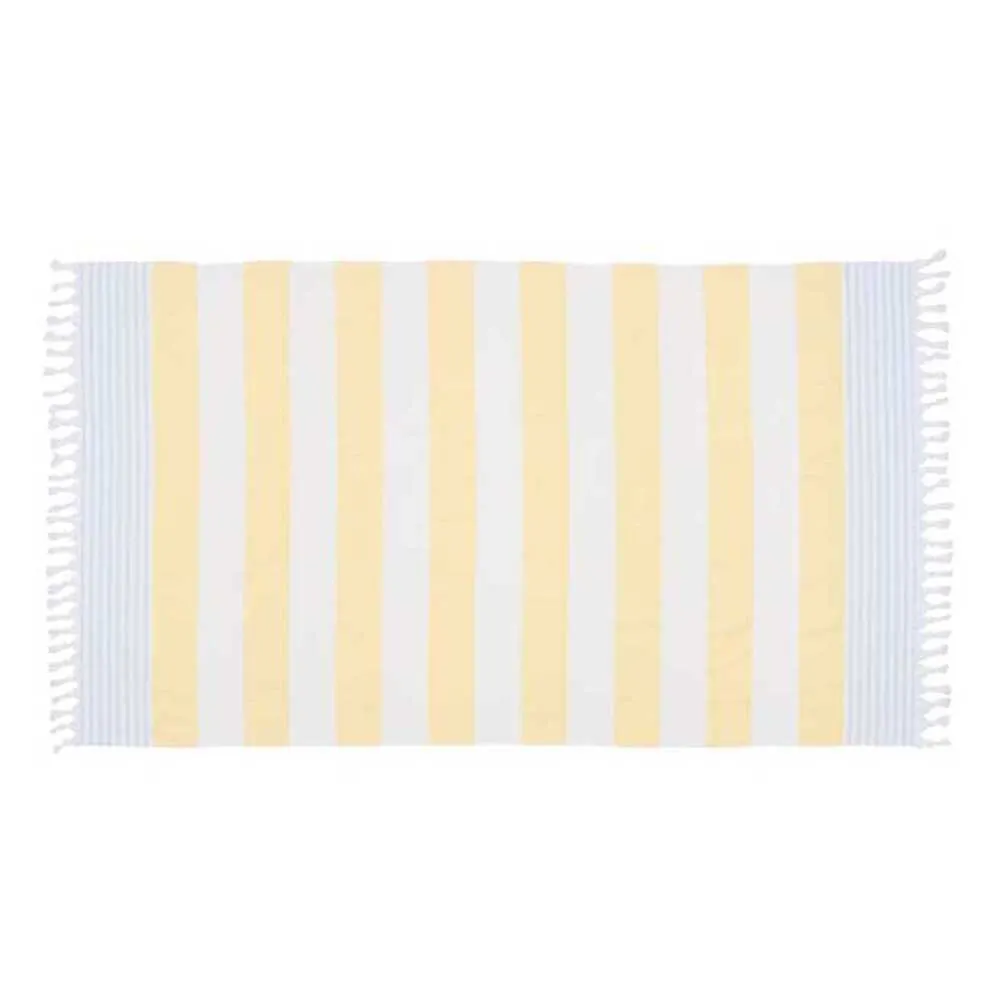 SEA RANCH Beach Towel i Sun Yellow är det perfekta tillbehöret för en dag på stranden eller en poolfest. Den här livfullt gula handduken är inte bara snygg utan också funktionell, och tack vare sin stora storlek är den idealisk för att slappa på sanden eller torka sig efter ett dopp. Den här handduken är tillverkad av ett mjukt och absorberande material som håller dig bekväm och torr hela dagen. Oavsett om du tillbringar en dag på stranden eller bara slappar vid poolen är SEA RANCH Beach Towel i Sun Yellow ett måste för alla sommarutflykter.