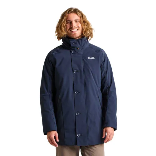 Navigera din dag från havet till staden i SLAM Dock Coat 2.0. Denna mångsidiga 3-lagersparka, tillverkad av 100% återvunnet tyg, erbjuder överlägset skydd för alla tillfällen. Den är helt vattentät (10.000 mm) och mycket ventilerande, med tejpade sömmar för att stänga ute väder och vind. Håll dig bekväm med dess utmärkta termoreglering, en mysig krage fodrad med rutmönstrad fleece, och en justerbar huva med hög synlighet som kan stuvas undan när den inte används. Den perfekta blandningen av marin prestanda och urban stil för absolut komfort överallt