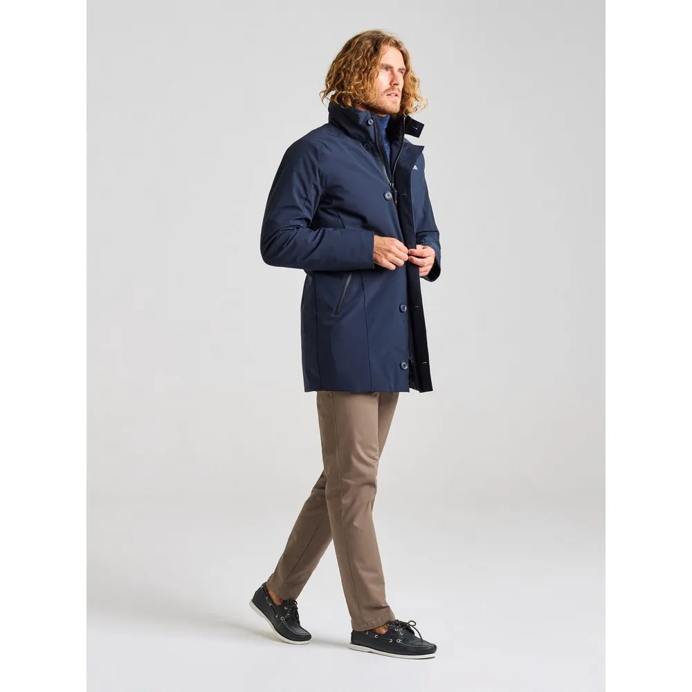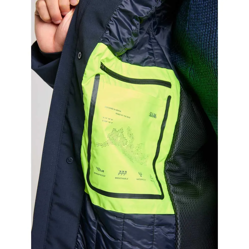 Dock Coat 2.0 är en praktisk 3-lagers parkas för alla tillfällen, även i stan. Vattentät och ventilerande, jackan har en infällbar huva, en hög krage fodrad med varm, mjuk gridfleece och tejpade sömmar. Parkasen Dock Coat 2.0 är en del av Marine Lifestyle-kollektionen och omfattar allt som havet och båtlivet uttrycker eller någonsin kan behöva. Vattentät (10 000 mm) och ventilerande, denna jacka erbjuder en justerbar infällbar huva med hög synlighet, en mjuk gridfleecefodrad krage, ergonomiskt skurna ärmar, en vattenavvisande frontklaff och tejpade sömmar. Det bästa sättet att uppleva havet överallt och i absolut komfort.
