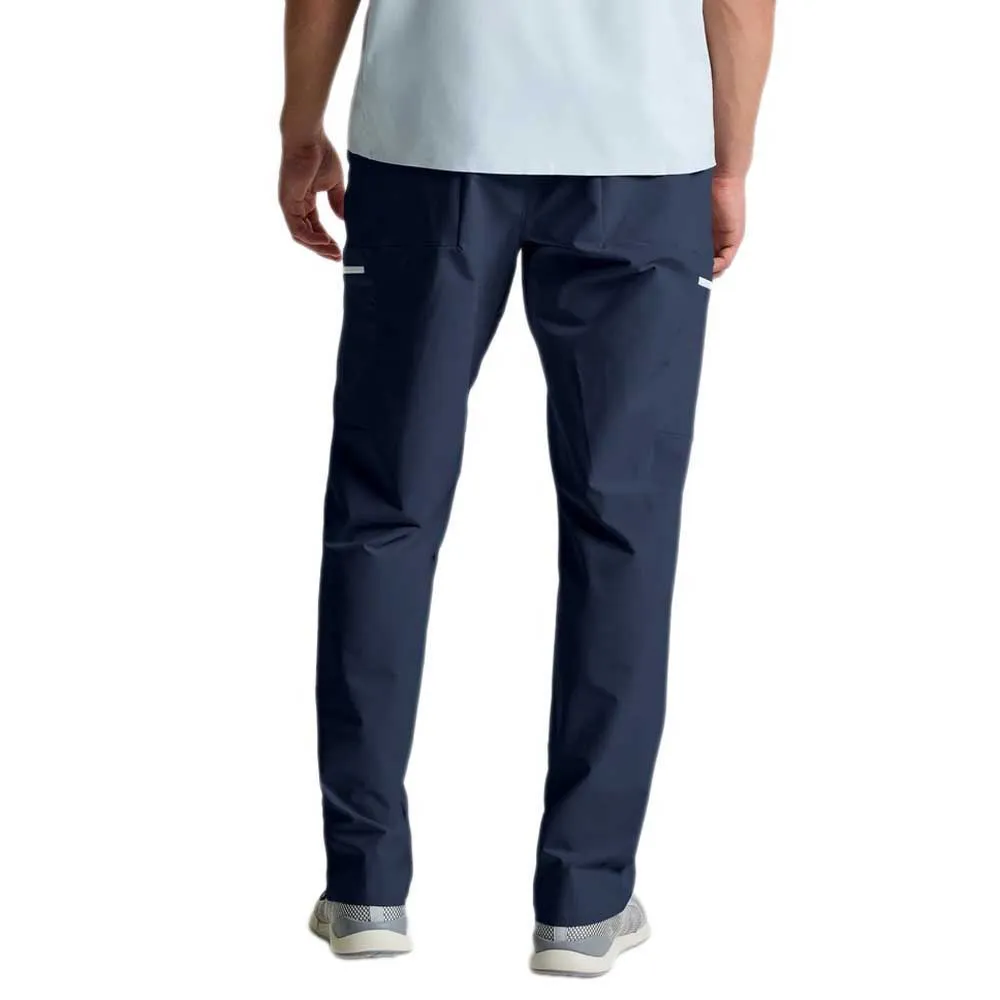 Om det aldrig är ett alternativ att stanna, är dessa One Design Cargo-byxor precis vad du behöver. Testade i regattor och träning, kommer de att följa dig genom varje rörelse tack vare Double Weave stretchtyget: mjukt inuti, extremt tåligt på utsidan. Oavsett om du är på skoten, rodret eller vid startbojarna, behöver du byxor som arbetar med dig, från entypsbåtar till Maxi Yachts. DWR-behandlingen (Durable Water Repellent) gör att vattnet bokstavligen glider av utan att tynga ner dig, medan de svetsade sömmarna garanterar maximal motståndskraft. En smal men bekväm passform, dessa inkluderar justering i ländryggen och en hög midja för att röra sig, böja sig och huka sig när du hämtar en spinnaker eller gennaker utan att lämna ryggen bar, praktiska fickor med självlåsande dragkedjor för att hålla allt inom räckhåll. Och estetiken? Tvåfärgade detaljer för en ren, teknisk stil. Extremt tåliga plastknappar, PFC-fria material (fria från perfluorkarboner, kemikalier som vanligtvis används i vattenavvisande behandlingar men som är skadliga för miljön eftersom de är persistenta och svåra att bryta ner): lägre miljöpåverkan, högre prestanda. Hoppa i dessa, gå ombord och allt du behöver tänka på är nästa manöver.