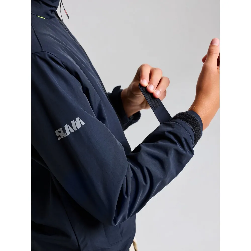 Jr Sailing Warm Jacket är det perfekta valet för barn som tillbringar tid utomhus. Ett varmt men vatten-, vind- och köldtåligt plagg tillverkat av robust men lätt Taslon 228T nylon. En barnvinterjacka fodrad med mjuk, varm fleece. Oavsett om det är för att gå till klubben, till skolan eller på utflykt, är Jr Sailing Warm Jacket ett slitstarkt, vattentätt (5 000 mm) och ventilerande alternativ som ditt barn kan bära i stan, såväl som i alla andra situationer där du behöver en jacka som klarar alla väder. Och när det regnar håller en infällbar och justerbar huva dem torra. Elastisk fåll med antiglidtejp för att hålla den tätt runt midjan. Två sidofickor med YKK-kvalitetsdragkedjor.