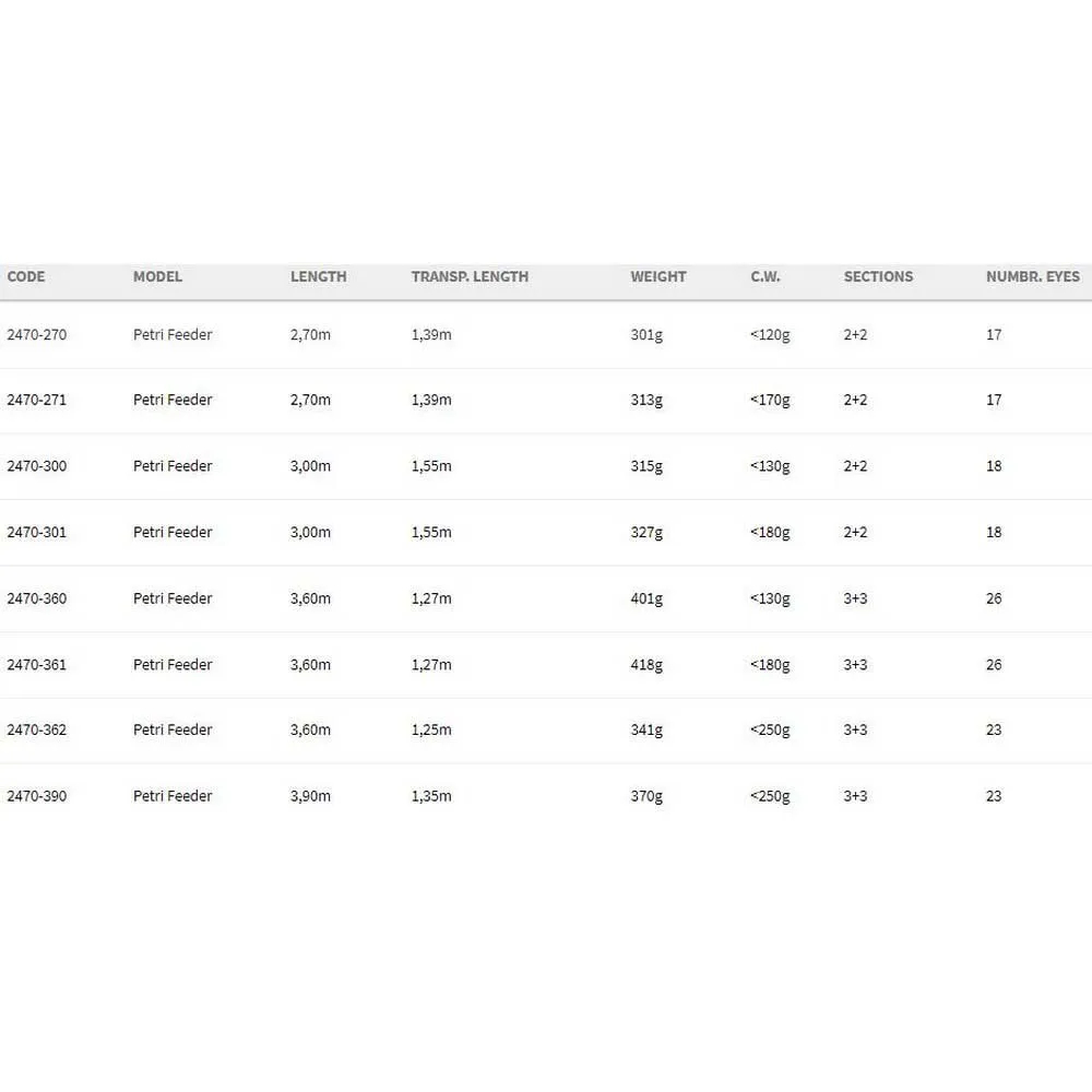 SPRO Petri Feeder Carpfishing Rod finns i en rad längder och kastvikter för att passa olika fiskesituationer och preferenser. Oavsett om du fiskar i små intima vatten eller stora öppna vatten, finns det en Petri Feeder-stav som passar perfekt för dina behov. Spöets mångsidiga design gör det idealiskt för att rikta in sig på karpar av alla storlekar, från mindre karpar till exemplarstora spegelkarpar.