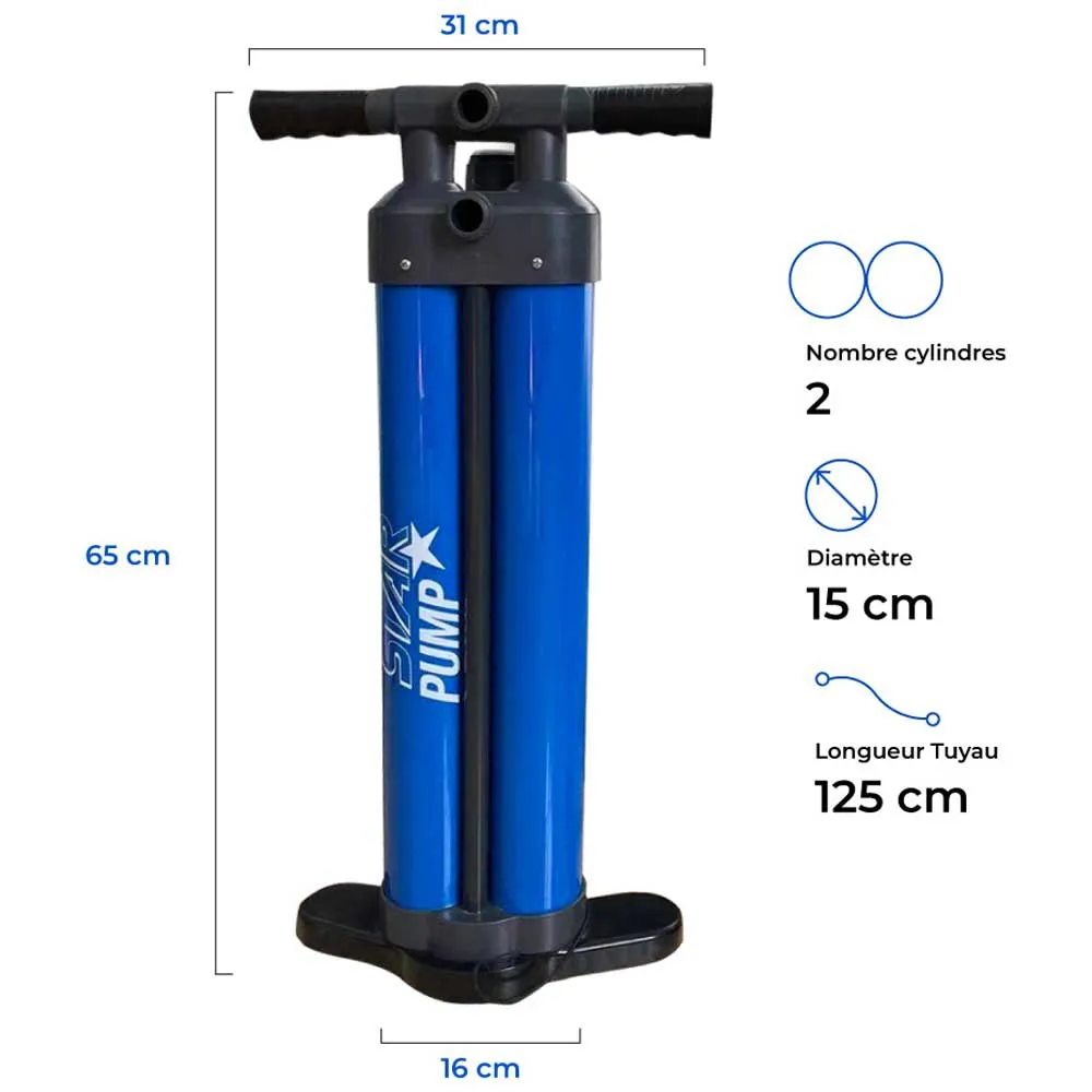 STAR Triple action 29psi luftpump är en mångsidig och effektiv pump designad specifikt för att pumpa upp surfbrädor och annan vattensportutrustning. Denna pump har en trippelverkningsdesign som möjliggör snabb och enkel uppblåsning med varje slag. Med ett maximalt tryck på 29 psi ger denna pump gott om kraft för att enkelt pumpa upp även de största surfbrädorna.