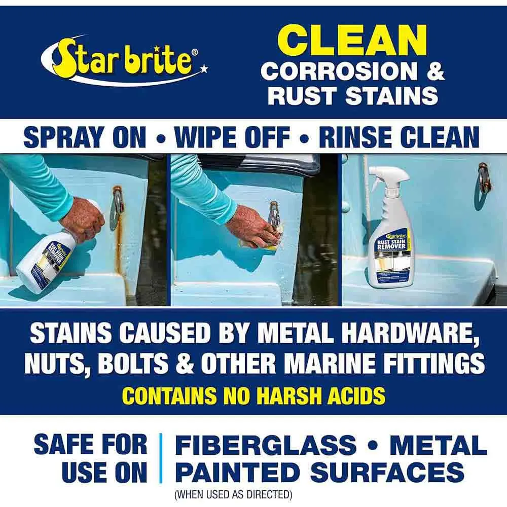 STARBRITE Rust Stain Cleaner är formulerad med kraftfulla men ändå säkra rengöringsmedel som bryter ner och löser upp rost vid kontakt. Dess snabbverkande formula börjar verka omedelbart och lyfter bort envisa fläckar utan att du behöver skrubba hårt eller skada din båts känsliga ytor.