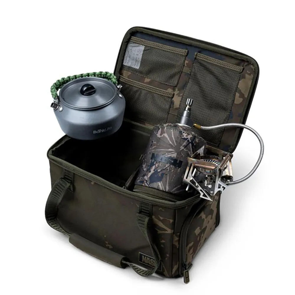 Compact and practical storage for your kettle, stove and essentials the Subterfuge Brew Kit Bags uses side zipped access to allow your gas canister to stay inside the bag whilst brewing up, and easy access to the contents whilst still using the rigid EVA lid as a drinks tray or table top.