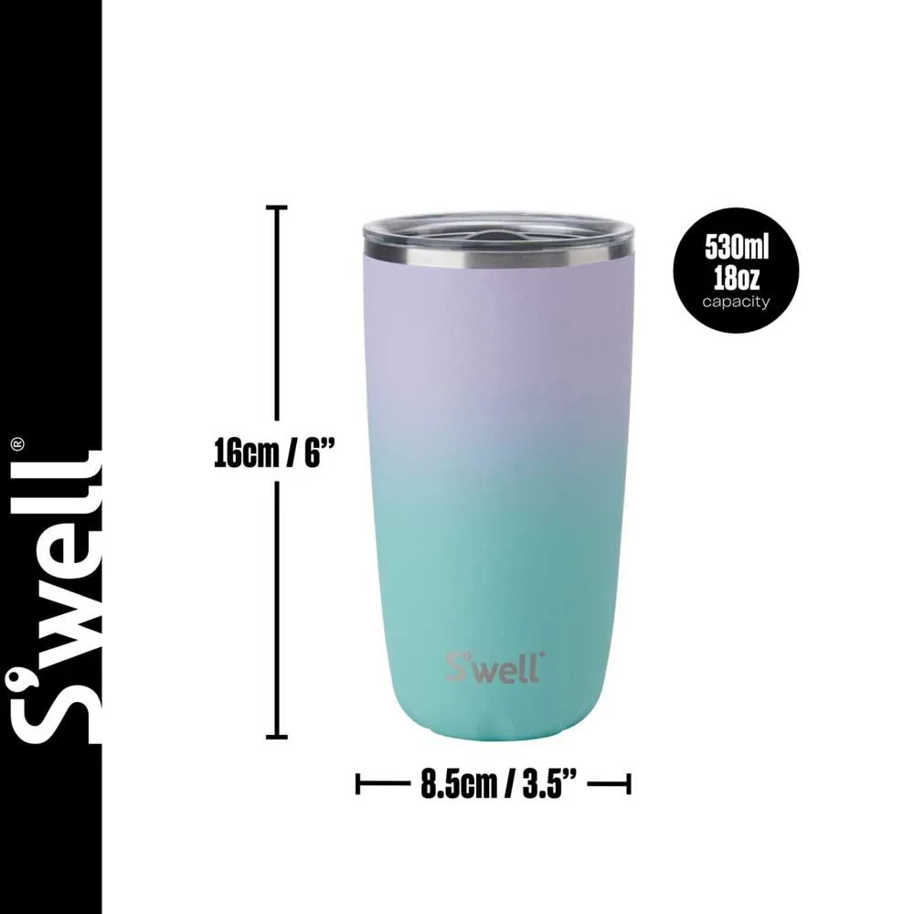 S´well Pastel Candy-serien ger en känsla av nostalgi och oskuld, och har en gradient som består av mjuka dämpade toner, såsom mintgrönt och mjuka lavendelfärger, som är tilltalande för ögat och även framkallar känslor av lugn och komfort. Pastel Candy Tumbler har Therma-S’well®-teknik och 18/8 högkvalitativt rostfritt stål, medan dess vakuumisolerade konstruktion håller drycker varma i upp till 4 timmar och kalla i upp till 12 timmar. Tumblern har ett brett munstycke och en tjock kant, vilket gör det enkelt att dricka, med eller utan isbitar. Den har en kondensfri utsida så att den inte svettas i händerna när du är ute och rör dig. Den 530 ml stora tumblern kan rymma din favoritvarma dryck eller ett glas iste när du behöver en uppfriskande törstsläckare. Denna isolerade kopp har också ett skjutbart lock för en lätt att dricka upplevelse, så den är idealisk för användning hemma eller på jobbet. Vi rekommenderar att du håller den upprätt och inte fyller den för mycket eftersom den inte är läckagefri. Designad för att hålla drycker varmare eller kallare längre. Upptäck resten av S’well-serien för snygga isolerade vattenflaskor, resemuggar, matflaskor och mycket, mycket mer.