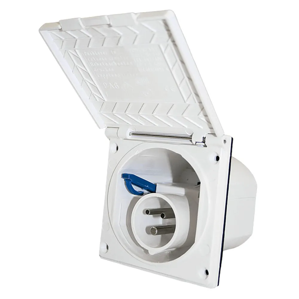 Detta CEE-uttag följer den strikta internationella standarden IEC 60309 och garanterar en säker och standardiserad anslutning. Det är specifikt utformat för användning med motsvarande CEE-kontakter, vilket säkerställer universell kompatibilitet med ett brett utbud av marin, kommersiell och industriell utrustning. Den robusta konstruktionen, med högkvalitativa, korrosionsbeständiga material, garanterar långvarig prestanda och exceptionell motståndskraft mot UV-strålning, stötar och slitage, vilket gör det perfekt lämpat för utmanande marina och utomhusmiljöer.