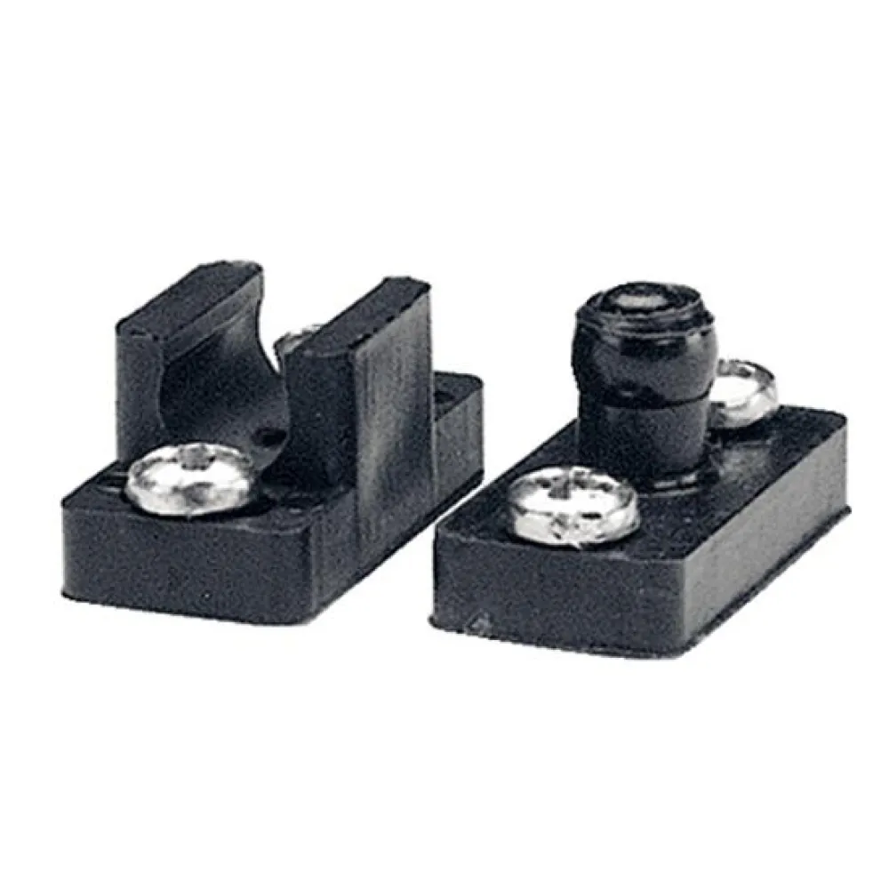 För promenad genom vindrutor och andra dörrar. Håller dörren stadigt på plats mot vibration och rörelse. Svart termoplast, bestående av kultappen, fånga, och skruvar. Stansade för att rymma dolda fästen eller externa vinklar.