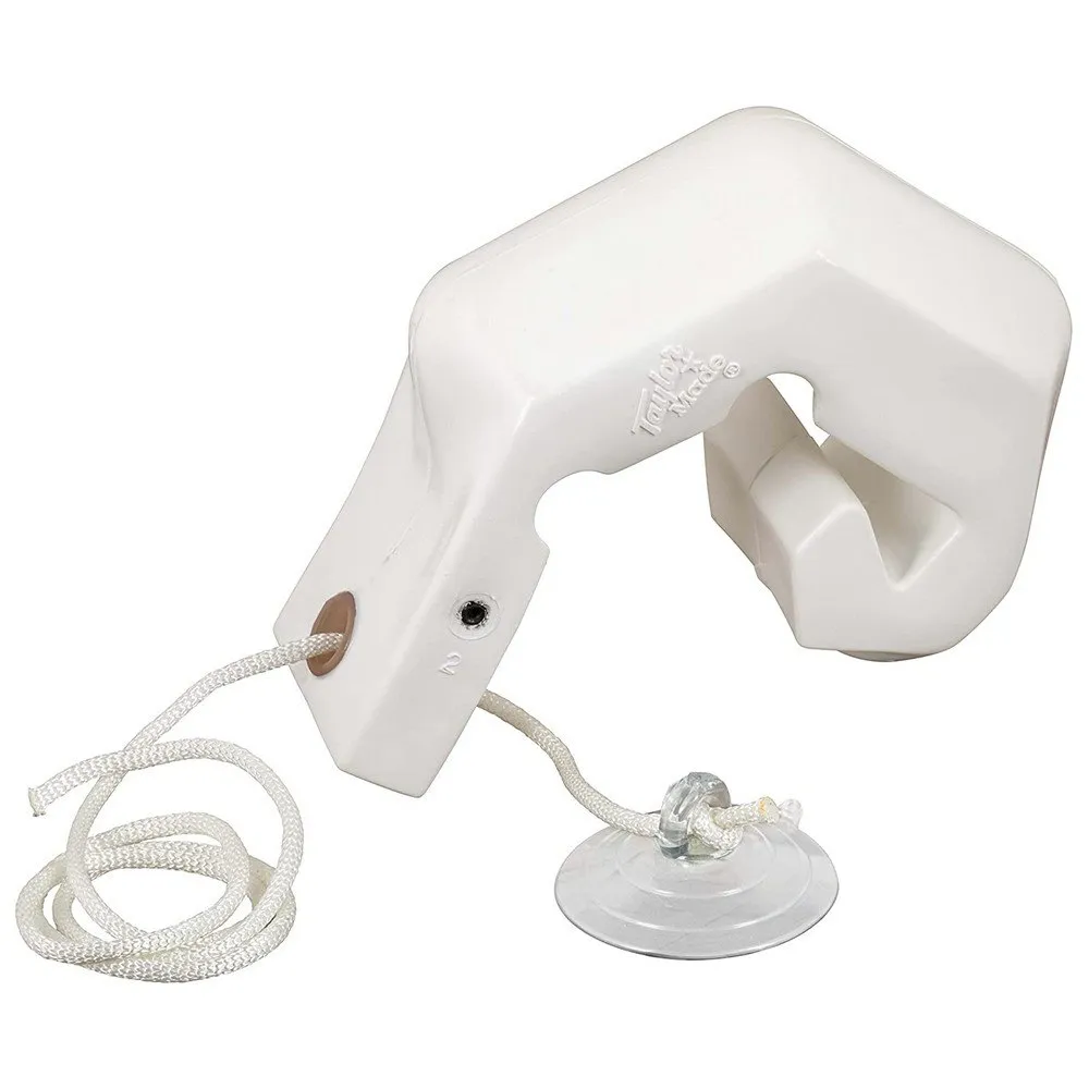 Har en uppblåsningsventil för lufttrycksjustering och inkluderar en sugkopp och säkringsledning.