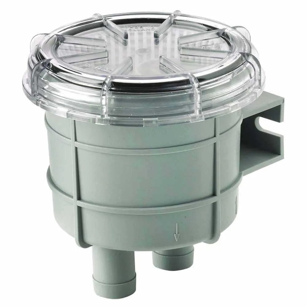 Kylvattensil för rekommenderad inmatning på 23 l/min. Med genomskinligt lock för enkel inspektion av filterinnehållet.
