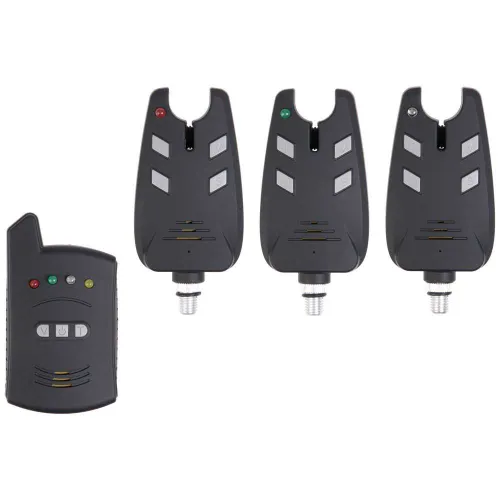 Väska med 3 trådlösa bitlarm och en mottagare.