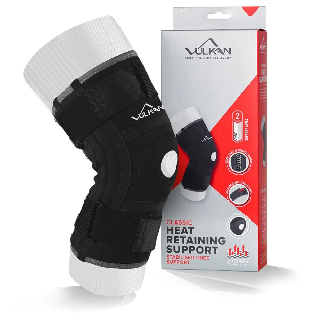 Lämplig för att lindra patellasymtom, instabila mediala/laterala ligament, broskskador. Spiralstag ger förbättrad sidostabilitet. Kompressionsrem för ökat stöd. Öppen knädesign med vadderad stöttning hjälper till att stabilisera knäskålen