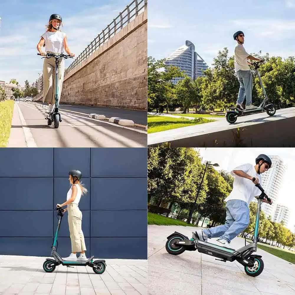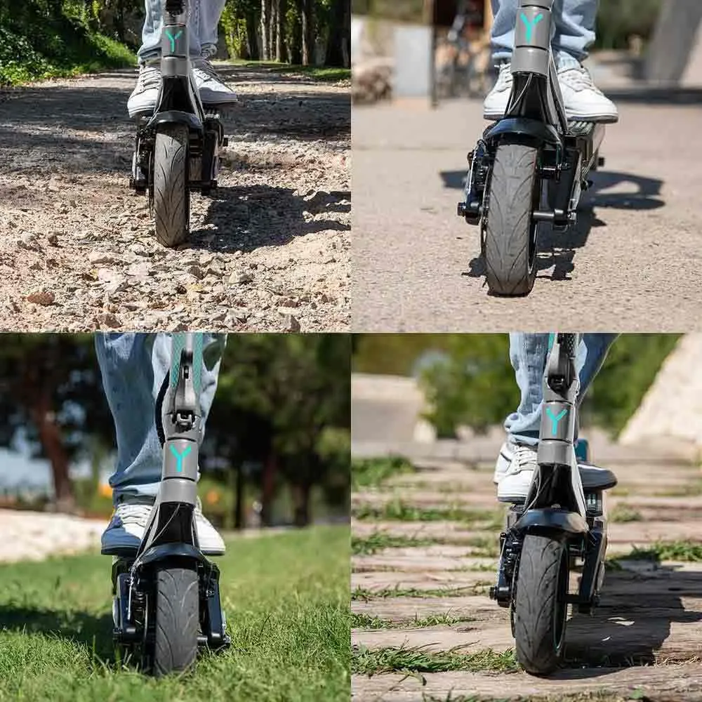 - Optimal håndtering og greb: med dets 10´´ hjul vil du overvinde enhver udfordring og altid med maksimalt greb og trækkraft. - Bremse sikkert og nemt: Med fokus på sikkerhed vil du altid køre sikkert takket være det tredobbelte bremsesystem med to højpræcisions bremseskiver og regenerativ e-ABS.