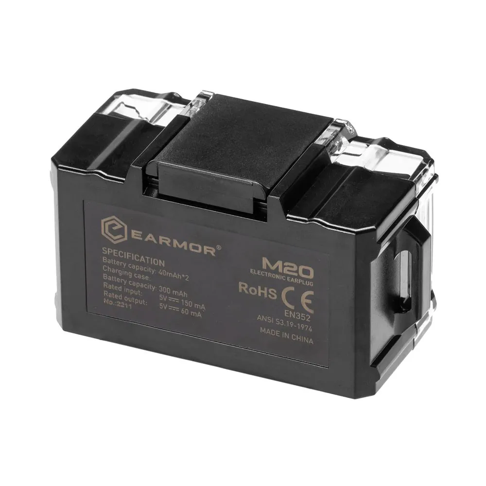 Designet og fremstillet af Earmor, er M20 elektronisk øreprop en aktiv støjreducerende, minimalistisk headset designet til brug i områder med høj støjforurening. Takket være NRR 22, IPX4 rating og velgennemtænkt konstruktion, er M20´s ydeevne eksemplarisk i sin prisklasse. Ørepropperne og dockningsstationen er lavet af høj kvalitet polymerer, med et par små elementer af metal. Ørepropper i tre størrelser er integreret i høreværnet for forbedret støjdæmpning og komfort ved længere tids brug.