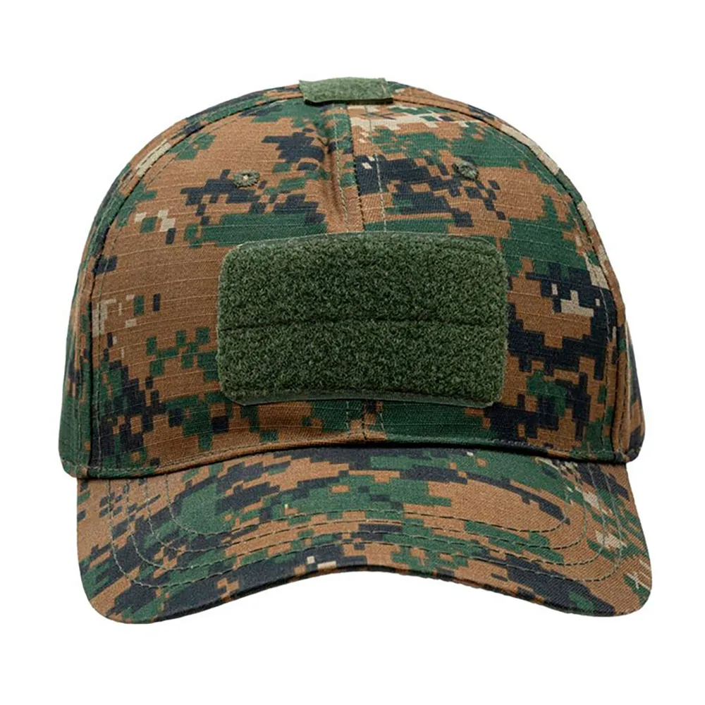Klassisk baseballkasket designet til at give camouflage og beskyttelse mod solen. Den er lavet af Rip-Stop stof (65% bomuld / 35% polyester), hvilket gør hatten let og holdbar. Den tørrer også hurtigt - uanset om det er en varm svedig dag eller regnvejr. Foran, bagpå og øverst er der placeret velcro paneler til enheds-ID eller morale patches. Størrelsen kan justeres med velcrostrop på bagsiden af ​​hætten.