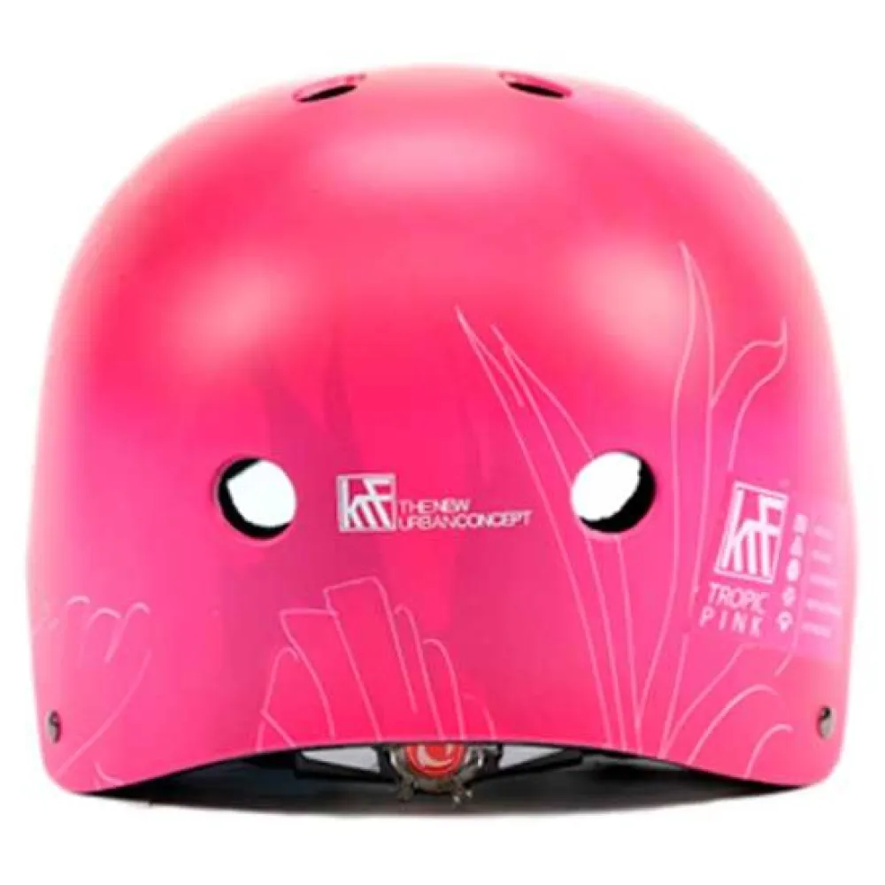 KRF Tropic Sport Pink Hjelm til voksne med kølesystem med 11 luftindtag, med yderside i ABS og integreret laminering af PVC, EPS-stødabsorberende system sammen med quick release farvebeslag med justeringssystem Baghjul.
