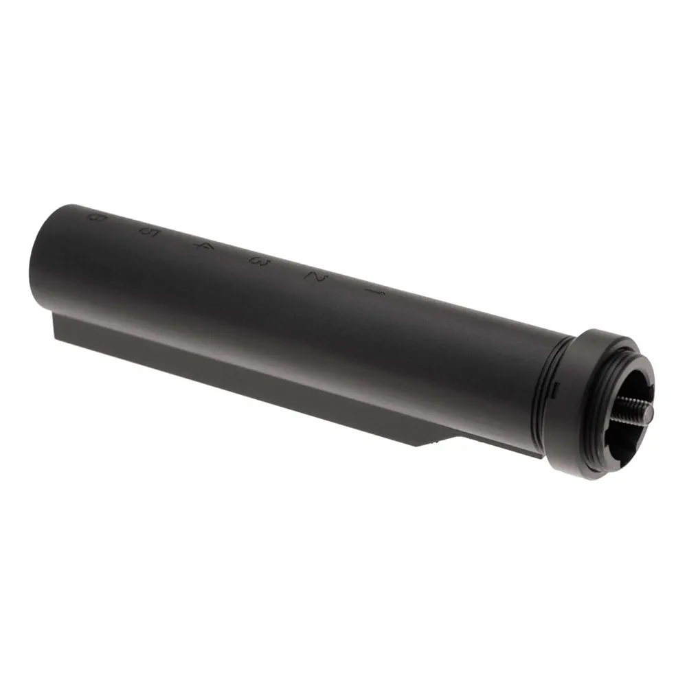 Dette er et komplet, klar-til-installation kit, der giver alt, hvad du behøver for en problemfri installation. Samlingen inkluderer multi-positions buffer tube, en robust låsemøtrik til sikker tilspænding, monteringsskruen og en alsidig ambidekstral remplade. Denne inkluderede endebeslag har flere fastgørelsespunkter, der giver fleksibilitet for både højre- og venstrehåndede spillere til at konfigurere deres enkeltpunkts- eller topunktsremme for optimal komfort og våbenfastholdelse. Det indre af tuben er også generøst dimensioneret til at rumme en bred vifte af almindelige LiPo-batterier, hvilket beskytter dem og ledningerne under brug.