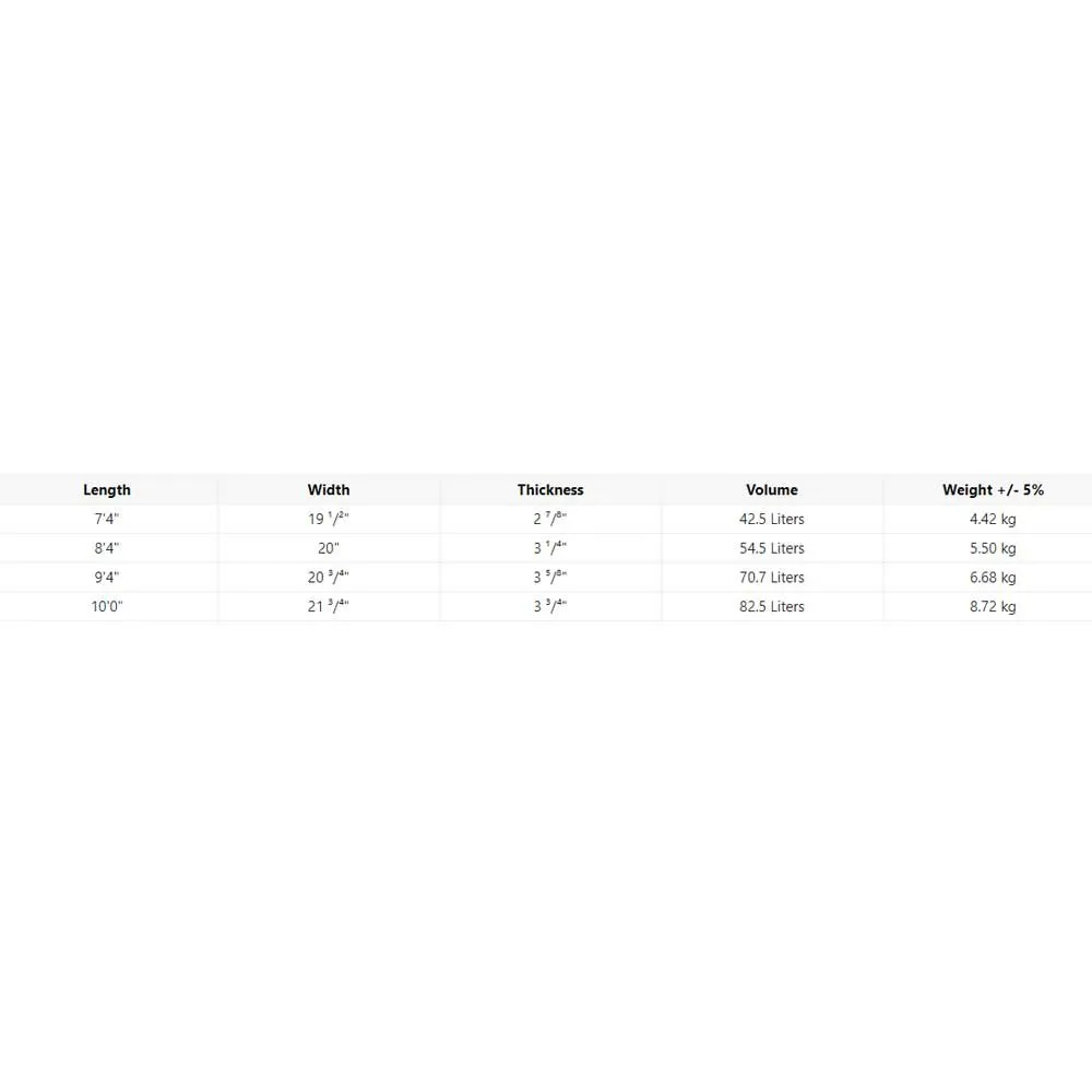 Equalizer-formerne er designet med NSPs brugerdefinerede surflay-up med en 36 g EPS-kerne, 12 mm træstreng og gennemprøvede Hawaiian Gun-glasspecifikationer