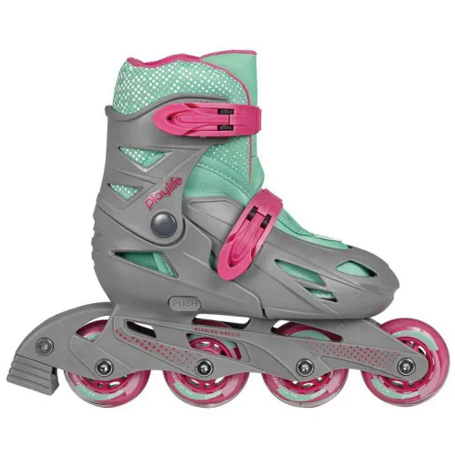 Playlife Riddler med sin friske grå / blågrøn / lyserøde farvekombination er en dejlig budgetskøjte, som børn kan have det sjovt på hjul.