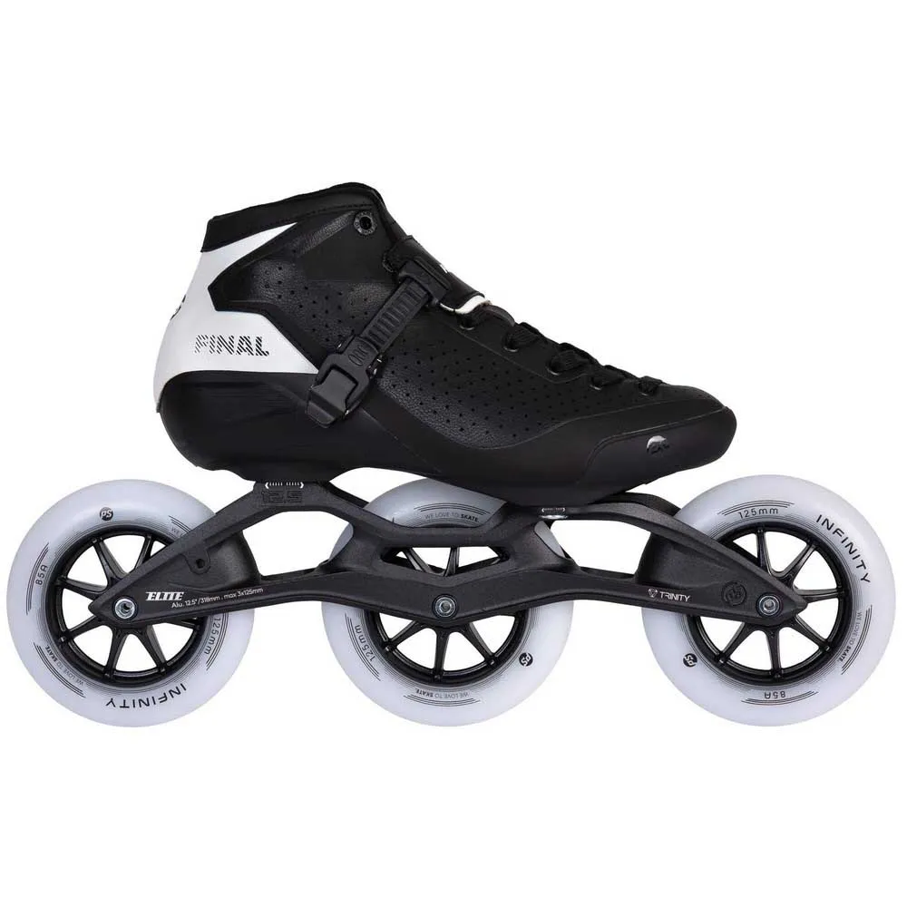 Oplev elite race-præstation uden den høje pris med POWERSLIDE Final 125. Udviklet fra en komfortabel fitness-rulleskøjte er den redesignet for maksimal hastighed og kontrol. Den støttende skal og den superlette magnesium Elite-ramme leverer utrolig kraftoverførsel. Med det berømte TRINITY 3-punkts monteringssystem for et lavt tyngdepunkt og overlegen stabilitet kan du finjustere din præstation. Rullende på 125 mm Infinity-hjul og WICKED ABEC 9-lejer tilbyder denne race-prøvede rulleskøjte uovertruffen værdi og hastighed