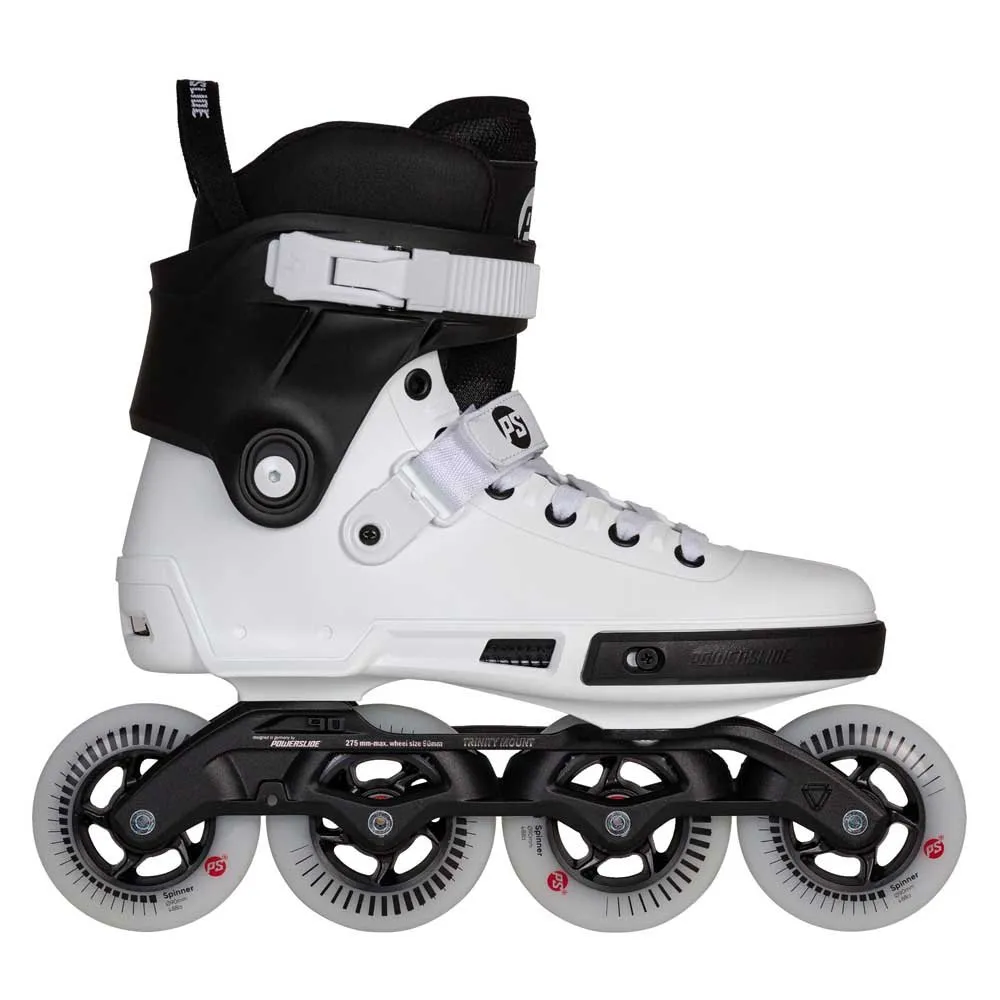 POWERSLIDE Next Core 90 Inline Skates i sort/hvid er et par højtydende inline-rulleskøjter designet til erfarne skøjtere. Disse skøjter har et elegant og stilfuldt sort og hvidt farveskema, der helt sikkert vil vække opsigt i skateparken eller på gaden.