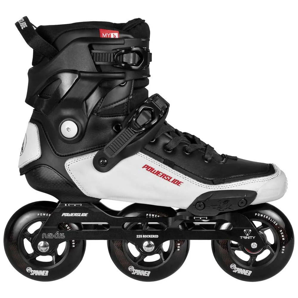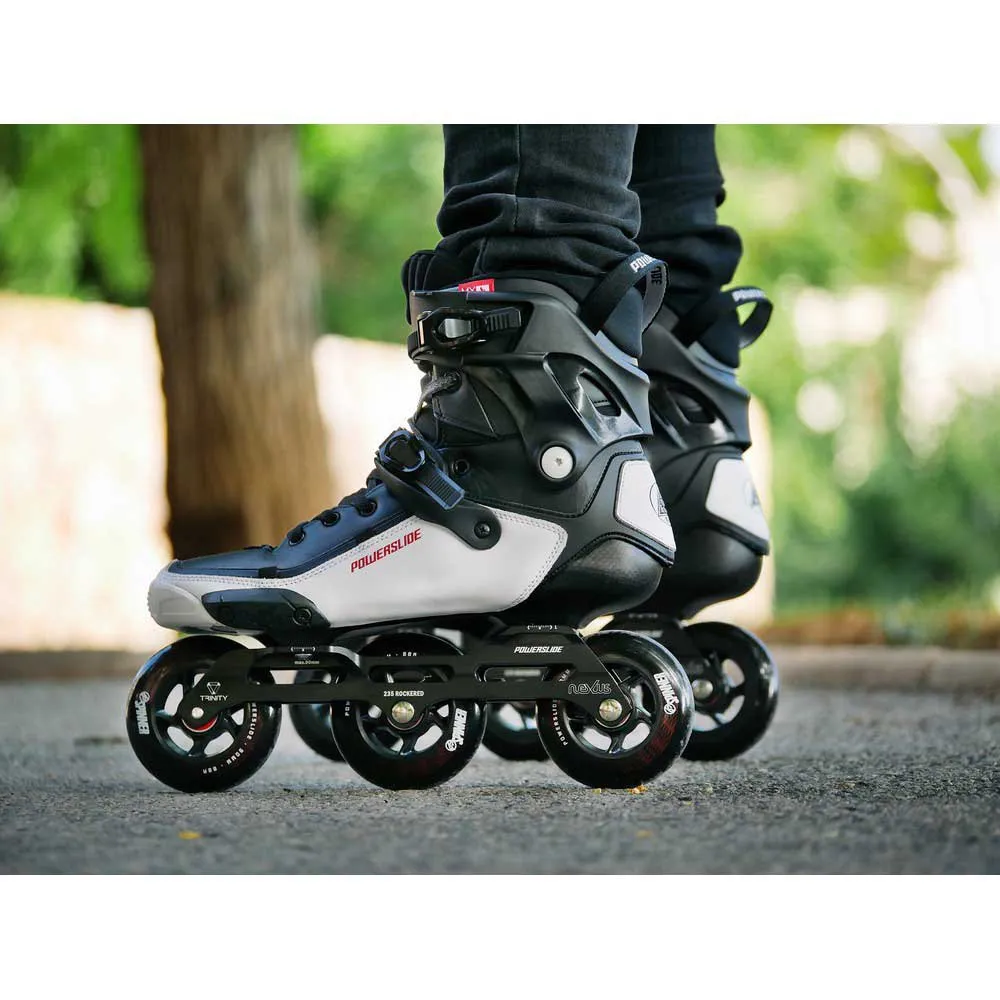 Freestyle-skøjter skal have 4 hjul! Vi beviste, at denne myte var forkert med Tau 90, den første trehjulsskøjte specielt udviklet til freestyle-skøjteløb. Vores flagskib freestyle-skøjte, Powerslide Tau 90, fik sin meget krævede opgradering, det er den første kompressionsstøbte carbonskøjte nogensinde, som kan varmestøbes for at justere pasformen, det er en absolut verdensnyhed. Hjertet af Tau er Nexus rocker trehjuls ramme. TRINITY-monteringen er bedre end en almindelig 2-punkts montering, da den giver en mere stabil platform, en bedre kraftoverførsel og meget lavt tyngdepunkt. Derudover absorberer tre monteringspunkter også vibrationer meget bedre. Større hjul gør det lettere at sidde tricks som ´Christie´. Derudover giver større hjul din ankel større gearing, så du kan løfte din hæl og tå højere. Det er lettere at balancere på et hjul med mere hastighed, og nu med introduktionen af større hjul gør det hastighedsvedligeholdelse og balance lettere end nogensinde.
