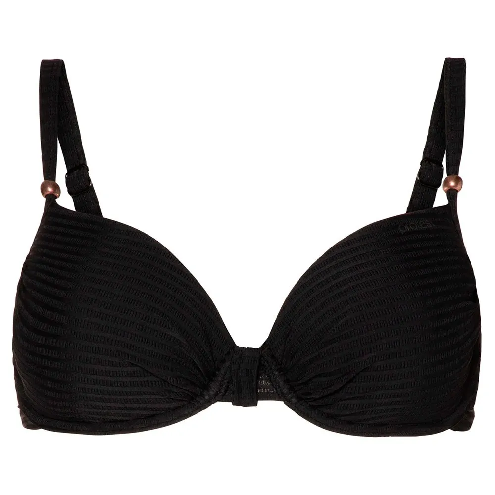 Denne fantastiske bikinitop er lavet af et struktureret sort stof.