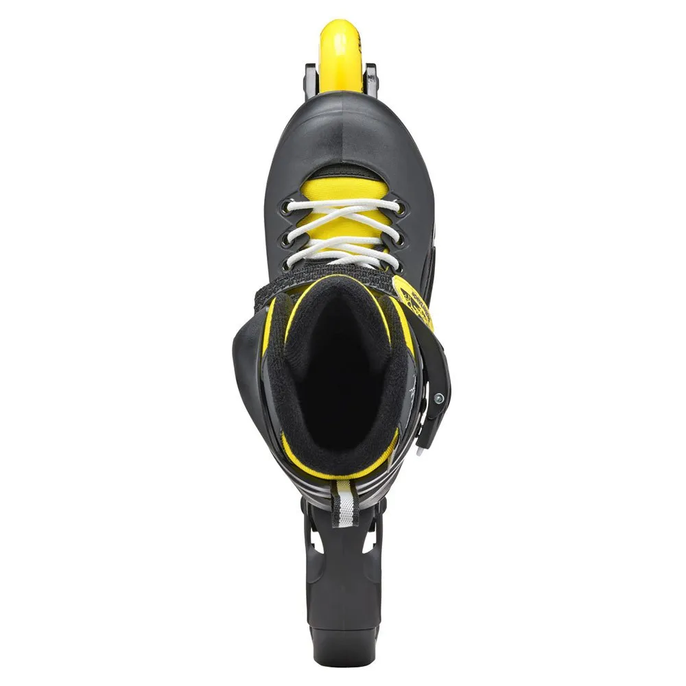 Leder du efter en højtydende skøjteoplevelse? Led ikke længere end ROLLERBLADE Fury Inline Skates! Disse skøjter har et slankt sort og fedt gult design og er ekspertudviklet til at levere en enestående tur. Med holdbare rammer og responsive hjul vil du være i stand til at skate med hastighed og præcision, så du kan tackle enhver udfordring, der kommer din vej. Uanset om du er en erfaren professionel eller lige er startet, er ROLLERBLADE Fury Inline Skates det perfekte valg for alle, der ønsker at tage deres skøjteløb til næste niveau. Så hvorfor vente? Saml et par i dag, og begynd at udforske verden på hjul!