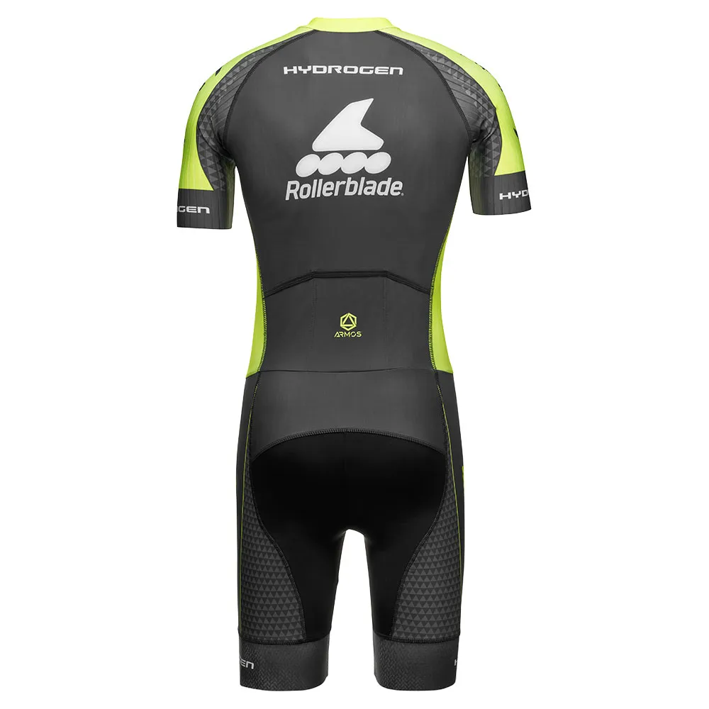 ROLLERBLADE Race Jumpsuit har et kort design med korte ærmer, omhyggeligt udformet til at minimere luftmodstand og maksimere din effektivitet ved hvert skridt. Føl vinden strømme ubesværet omkring dig, når du skærer gennem luften og barberer dyrebare sekunder af dine omgangstider.