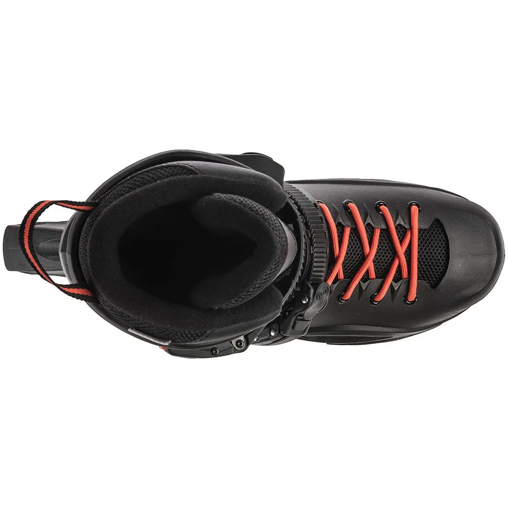 Inde i denne beskyttende skal ligger en højtydende inderfor, konstrueret for overlegen komfort. Den har rigelig polstring og en integreret støddæmper i hælen for at dæmpe vibrationer og blødgøre landinger, hvilket reducerer træthed og giver dig mulighed for at skøjte længere. Den sikre og anatomiske pasform forbedres yderligere af et pålideligt lukkesystem, som inkluderer et låsende manchetspænde, et 45-graders mikrojusterbart spænde og standard snørebånd. Denne trio arbejder i harmoni for at låse din hæl og ankel på plads, hvilket giver en sikker, tilpasset pasform for optimal kontrol.