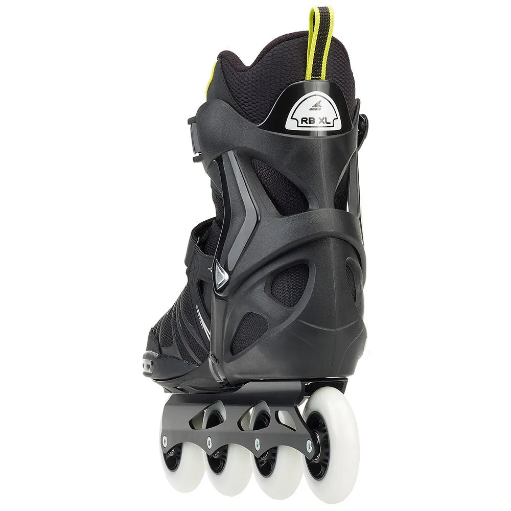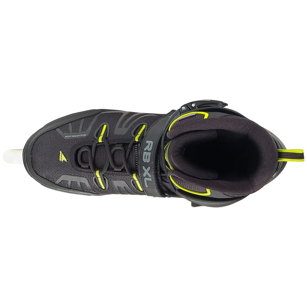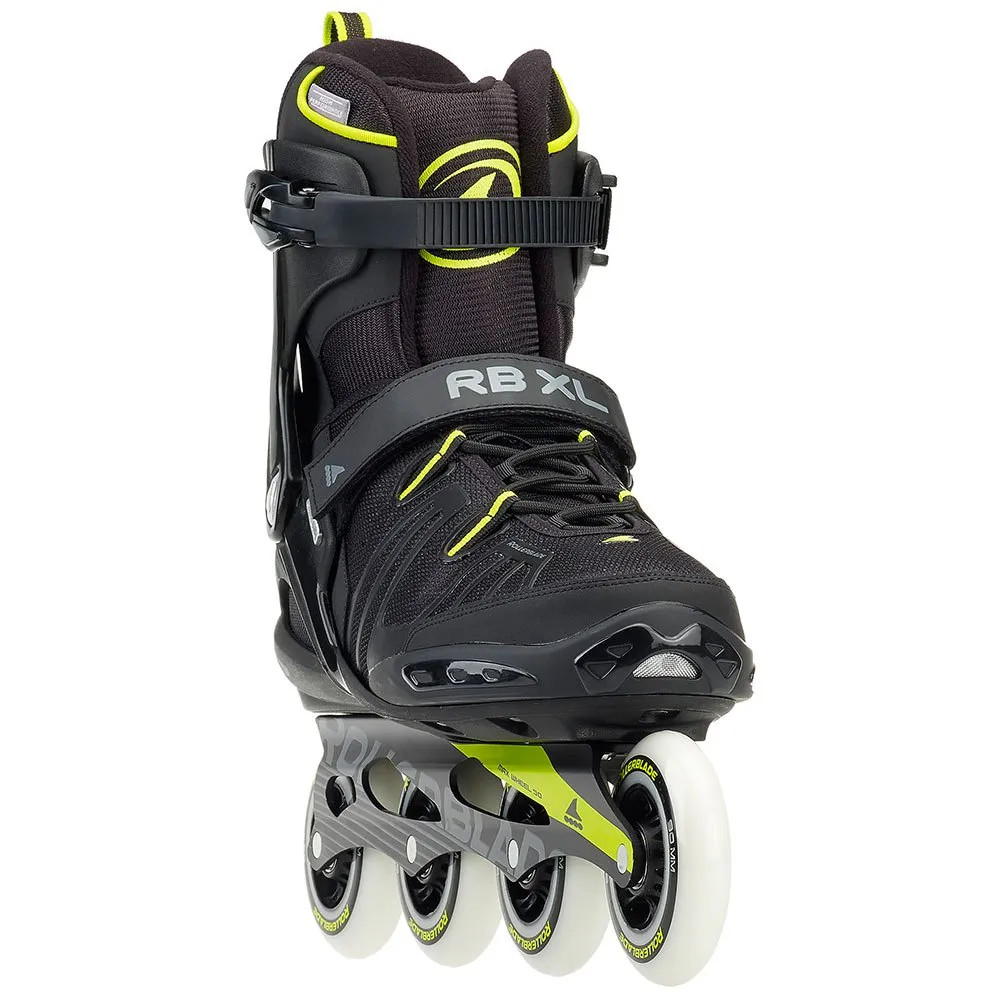 RB XL er designet til den større fodskater. Det er det eneste skøjte på markedet, der er specielt konstrueret i størrelser 14 17.5 for at give den holdbarhed, støtte og ydeevne, som større skatere kræver. Det, der gør RB XL unik, er struktur og rammekonstruktion med støvler og manchetter strategisk forstærket og en ekstruderet aluminiumsramme med en ideel længde til korrekt balance; en valgfri brems er inkluderet. Ekstra dæmpning, et spænde / rem / kniplukningssystem og 90 mm performancehjul med SG5-lejer sikrer også, at større fødder får samme ydelse i en skøjte.