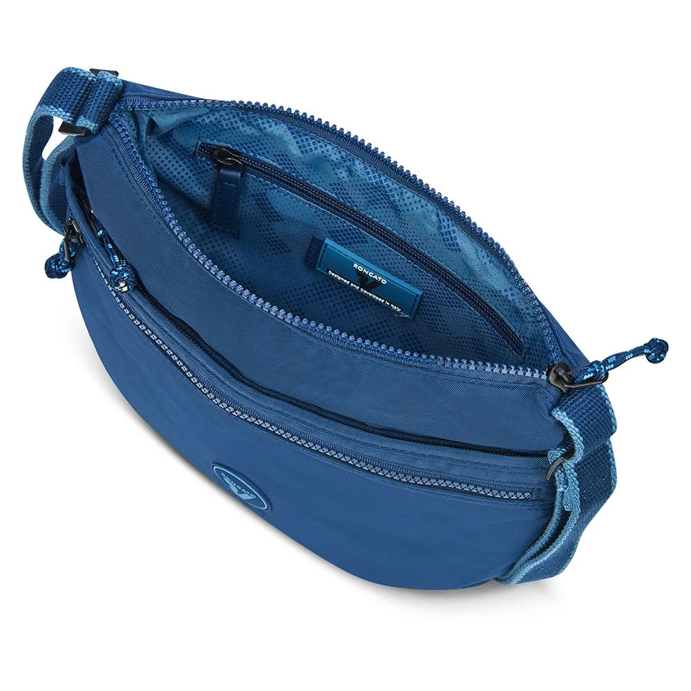 Den lille dame crossbody-taske fra ROLLING-kollektionen af RONCATO er perfekt til dem, der søger praktisk og sporty stil.