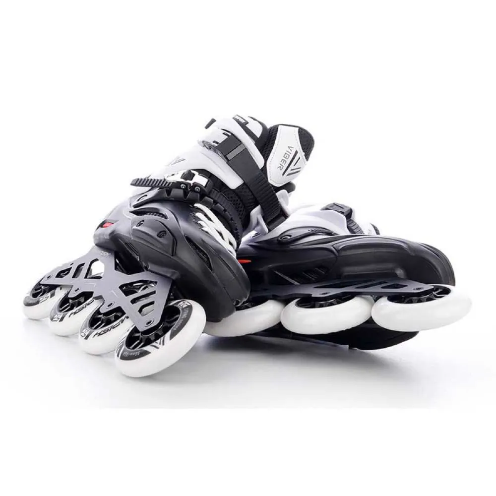 Slip din alsidighed løs med TEMPISH VIBER 90, den ultimative hybridrulleskøjte til avancerede skatere. Ved at forene en responsiv freestyle hardboot med et hurtigt fitness-chassis er den perfekt til både langdistanceruter og adræt byskating. Den robuste, CNC-fræsede ramme, store 90 mm hjul og ABEC-9 lejer leverer enestående hastighed og kontrol. En fuldt ventileret skal og liner holder dig kølig, mens en stødabsorberende hæl og anatomisk indersål sikrer varig komfort. Med et sikkert mikrospændesystem og holdbar konstruktion er VIBER 90 din billet til ethvert skatingeventyr